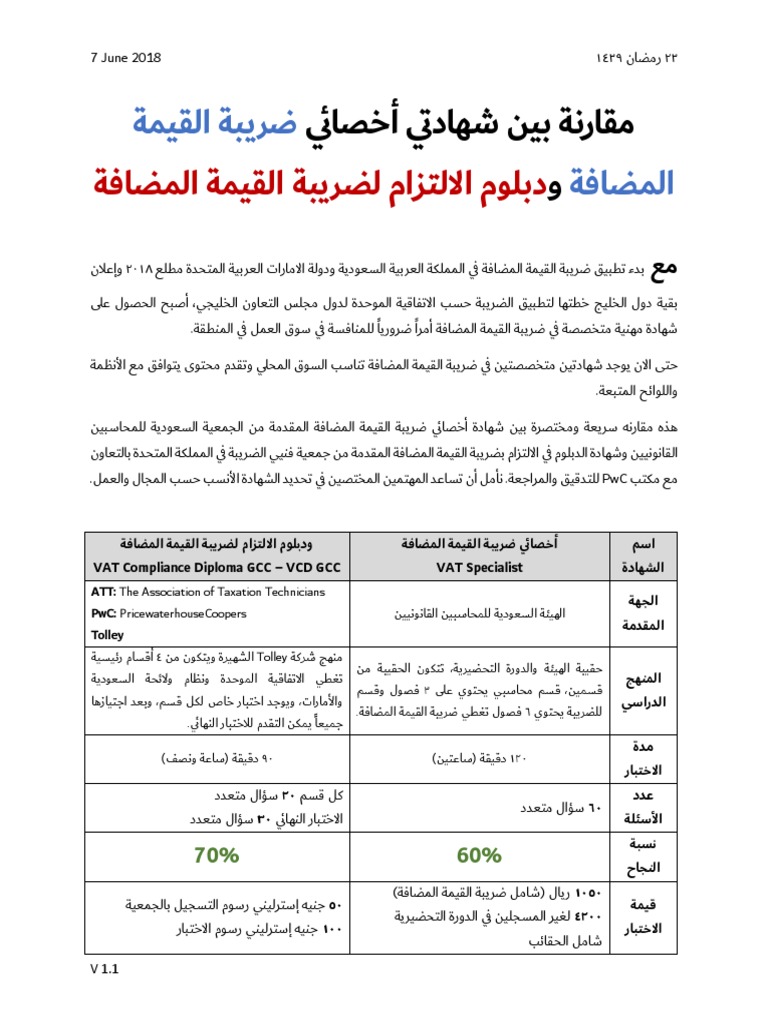 ضريبة القيمة المضافة بدول مجلس التعاون لدول الخليج العربي لـ admin 10 فبراير 2019 هـ الضرائب الغير مباشرة ضريبة القيمة المضافة. 2 اختبار فني المحاسبة. 1 اختبار أخصائي ضريبة القيمة المضافة. ضريبة القيمة المضافة فى السعودية ملف هام جدا في كل ما يتعلق بضريبة القيمة المضافة الاهداف 1 تعريف المشاركين عن ضريبة القيمة المضافة 2 الخاضعين لضريبة القيمة المضافة 3 نسبة الضريبة 5.