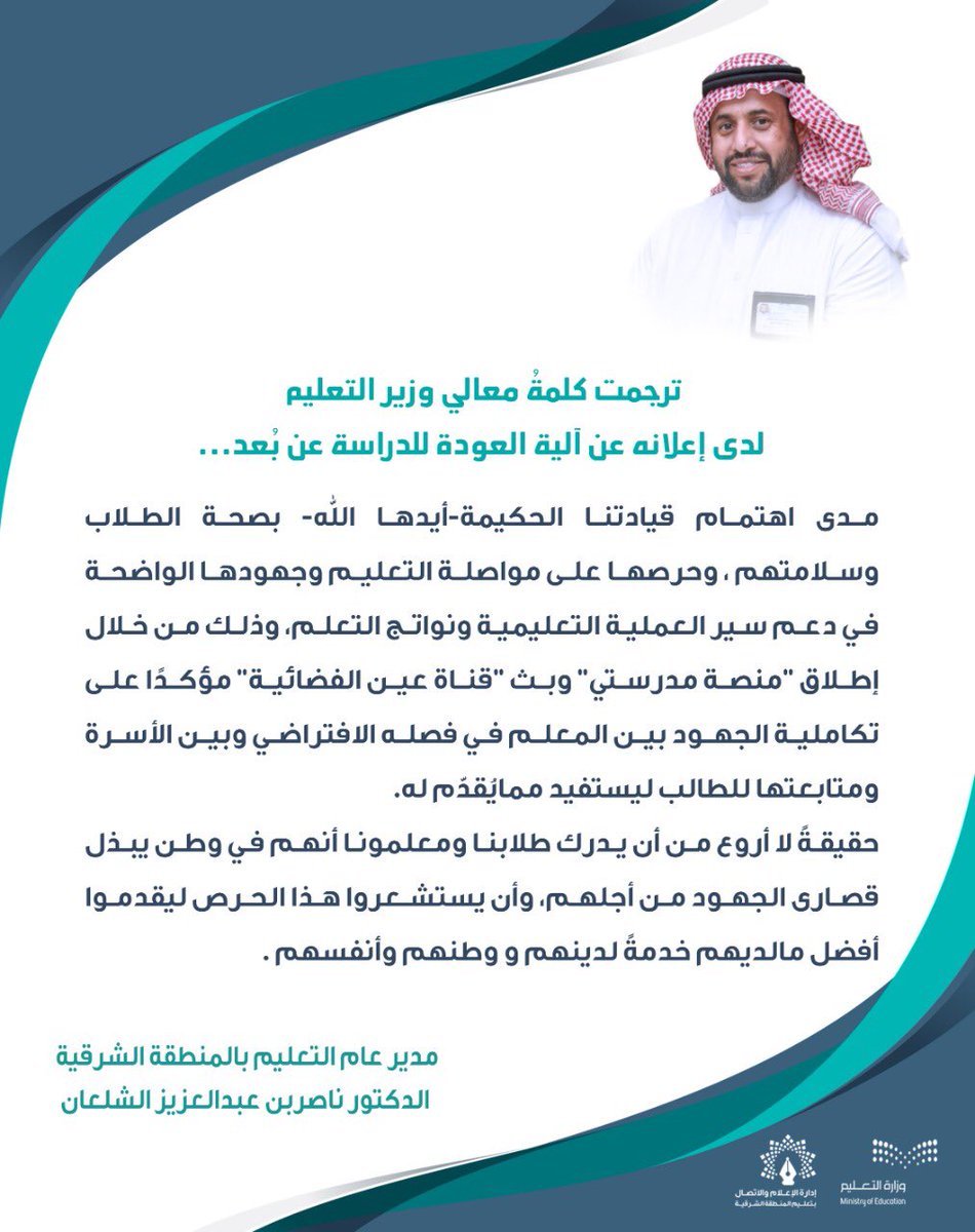 ادارة التعليم بالمنطقة الشرقية. ناصر الشلعان أن تعليم الشرقية يحاول ترجمة الأهداف الإستراتيجية التي تتبناها وزارة التعليم لتحقيق رؤية 2030 ومن ذلك حرص الوزارة للوقوف على جاهزية ونجاح برامج الاستعداد لبدء. تعلن الإدارة العامة للتعليم بالمنطقة الشرقية عن توفر عدد من الوظائف بمسمى سائق و عامل على بند الأجور بالفئة أ على النحو التالي. وج هت إدارة التعليم بالمنطقة الشرقية كافة مكاتب التعليم والإدارات وجميع المدارس الحكومية والأهلية والعالمية بتكليف منسقي ومنسقات أمن وسلامة لكل مدرسة ومكتب ممن يشغلون وظائف إدارية خلال الأسبوعين المقبلين. أكد مدير عام التعليم بالمنطقة الشرقية د.