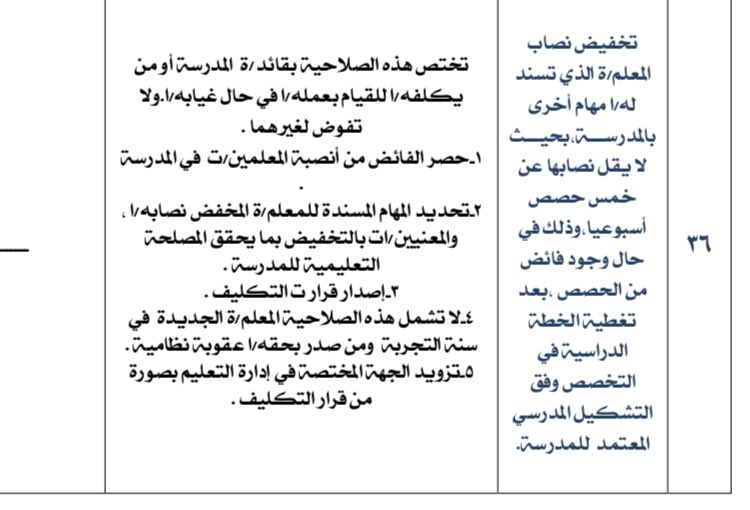 فتم تكليف أحد المعلمين معي بنفس التخصص بالوكالة وتخفيض نصابه إلى ٨ حصص وأنا تحملت ٢٤ حصة مع العلم إن أنا الوحيد بالمدرسة ٢٤ حصة والبقية ٢٠ وأقل.