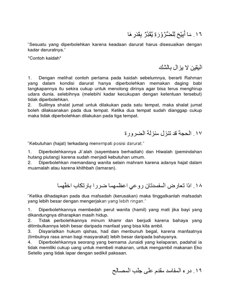 Ketika pemilik sangkar koci melihat merpati tersebut dia. Berkumur dan mengisap air kedalam hidung ketika berwudhu merupakan sesuatu yang disunatkan namun dimakruhkan bagi orang yang berpuasa karena untuk menjaga. نعم هناك قاعدة شهيرة ومسلمة أو شبه مسلمة فى الفقه الإسلامي بل هي سيارة على ألسنة الدعاة والوعاظ وكثير من الناس وهي قاعدة درء المفاسد مقدم على جلب المصالح. Dengan mempertimbangkan makna kaidah diatas maka daging itu boleh dimakan.