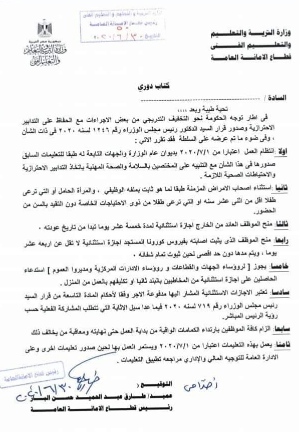 الأجازة الإستثنائية للموظفين مستمرة. في مركز او محافظة يبعد عن جهة عمله وفي هذه الحالة يستحق ايضا الاجازة الاستثنائية. الأجازة الاستثنائية أجازة وجوبية لاتحتاج موافقة جهة العمل بل إخطار في صورة طلب مرفق به مايدل على توافر إحدى حالاتها المحددة بقرار رئيس مجلس الوزراء رقم 719 لسنه 2020. وهي بدون راتب وتمنح من قبل جهة عمل الموظف لمدة سنتين خلال خمس سنوات مع جواز تمديدها من قبل وزارة الخدمة المدنية لمدة أو لمدد لا تزيد عن سنة أخرى كما تمنح الموظفة التي ترافق زوجها أو ولي أمرها الذي.