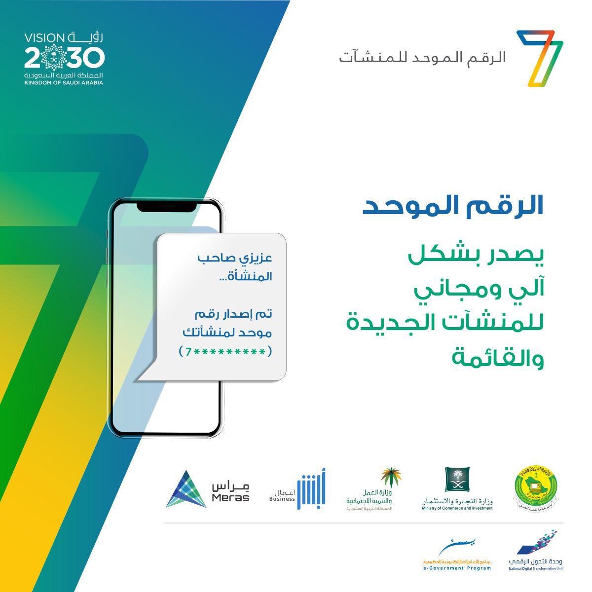 أطلقت وحدة التحول الرقمي وهي مركز امتياز يعمل على تسريع عملية التحول الرقمي في المملكة وتحقيق أهداف رؤية 2030 اليوم دمة الرقم الموحد للمنشآت. اسالنا موقع سؤال وجواب عربي. الرقم الموحد للمنشأة سيصدر بشكل آلي ومجانا للمنشآت المسجلة في وزارة التجارة والاستثمار أو المسجلة في. وسيتكون الرقم الوطني الموح د للمنشآت من 14 خانة أساسية ترمز كل خانة لواحدة أو أكثر من خصائص المنشأة المعنية.