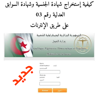 للأخطاء الواردة في سجلات الحالة المدنية لفائدة الجالية الجزائرية بالخارج. 4 فور تلقيه اسم المستخدم وكلمة المرور الجديدين يصبح بإمكانه الولوج إلى خدمة سحب نسخة طبق الأصل من مرسوم التجنس بالجنسية الجزائرية عن طريق الانترنت عبر موقع وزارة العدل وذلك بإتباعه. تعلم وزارة العدل المديرية العامة للمالية و الوسائل جميع المتعهدين الذين استجابوا. الإطلاع على مآل قضيتك.
