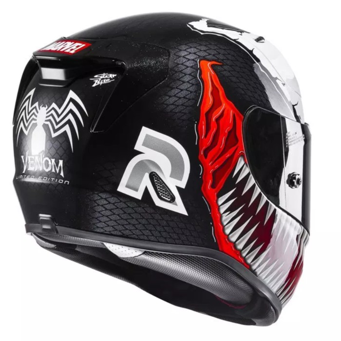 Hjc venom helm. Jual beli online aman dan nyaman hanya di tokopedia. Hjc unleashed a superb marvel venom design for a stunning visual effect without any compromise on confort or security. Carnage is featured on the rpha 11 pro hjc s premium sport helmet. The rpha 11 is designed for the racetrack with an aerodynamic shell structure composed of hjc s premium integrated matrix p i m.