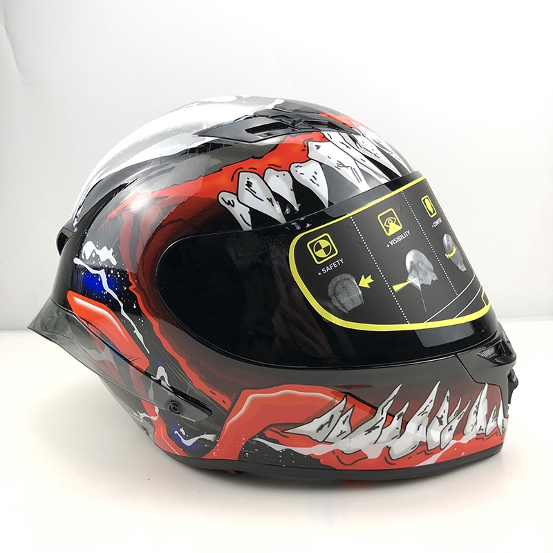 New listing helmet hjc rpha 11 venom marvel mc1 red black white size. Free shipping lowest price guaranteed top of the line expert service. The signature ghoulish grin that the symbiote venom has in full form appears menacing from any car s rear view mirror. Hjc unleashed a superb marvel venom design for a stunning visual effect without any compromise on confort or security.