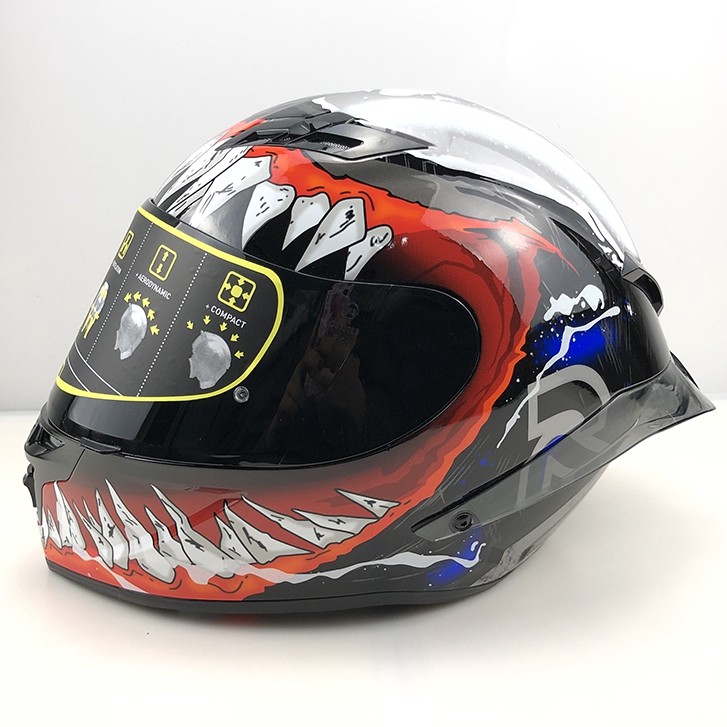 Und die auch wieder auf dem hjc topmodell rpha 11 platz findet nun mit dem namen venom ii marvel. Hjc rpha 11 marvel venom ii full face motorcycle helmet get your super hero motorcycle helmet. The track focused rpha 11 offers great venting and field of view. Dark smoke shield and anti fog lens included.